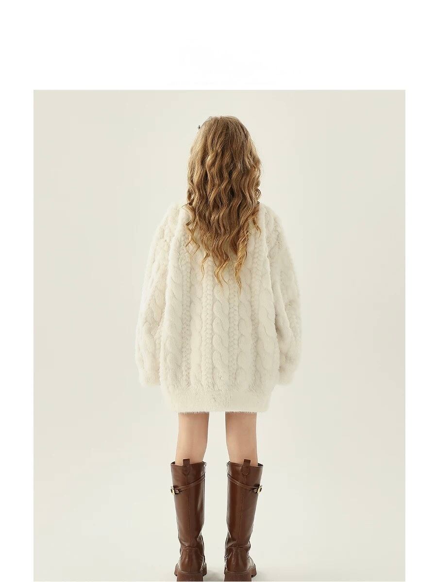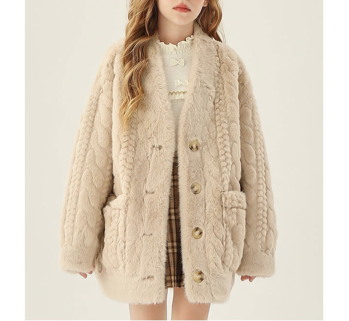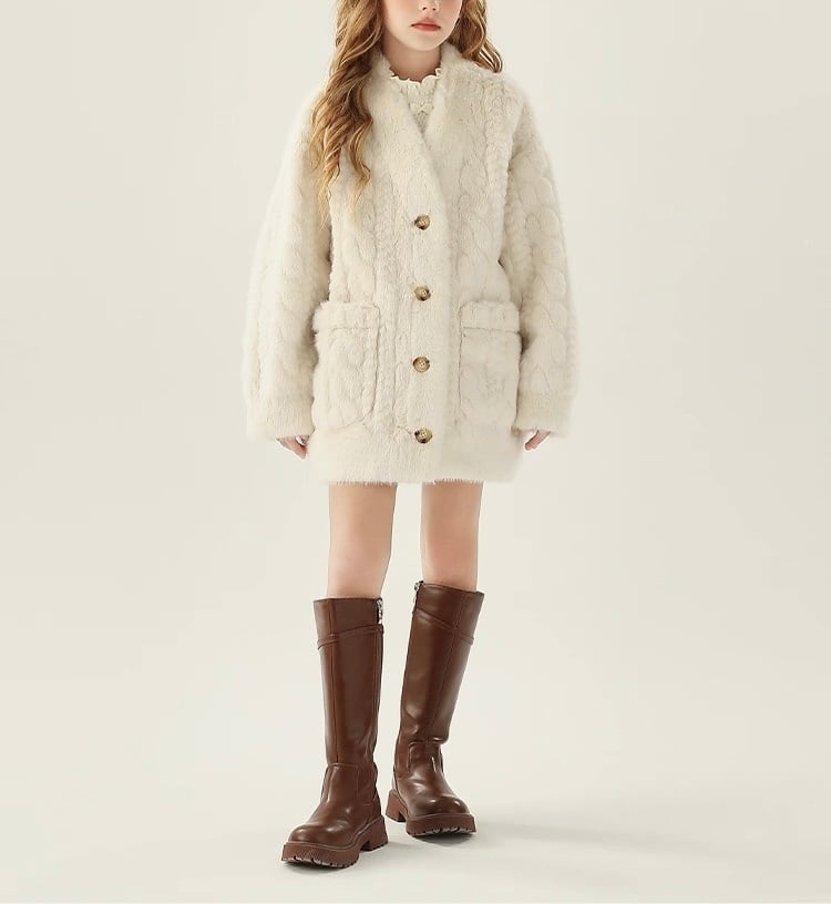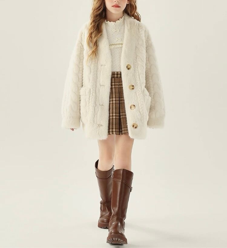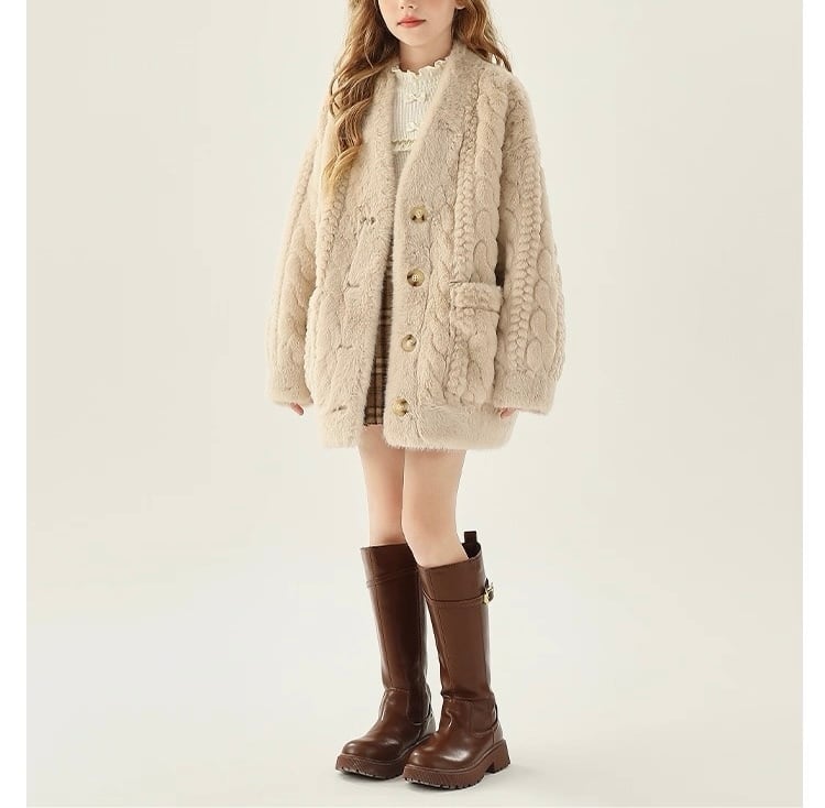 【kids】ケーブル網ニット風エコミンクファーコート☆