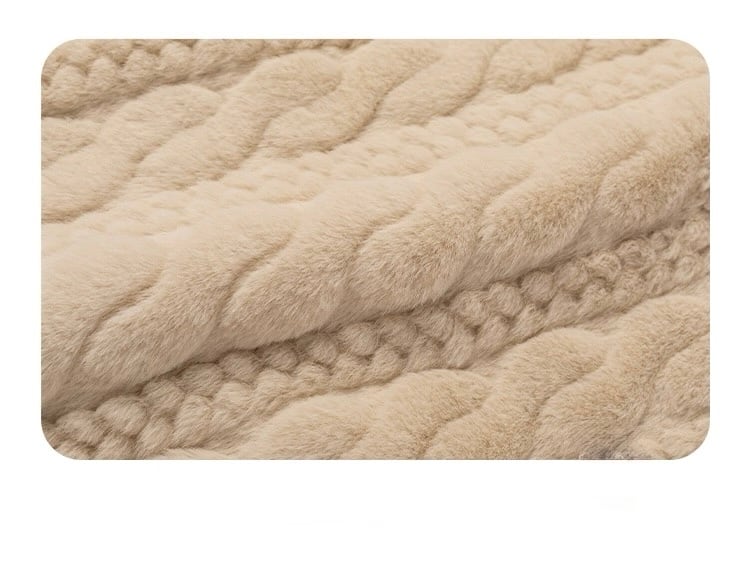 ケーブル網ニット風デザインが可愛いエコファーのコートです☆