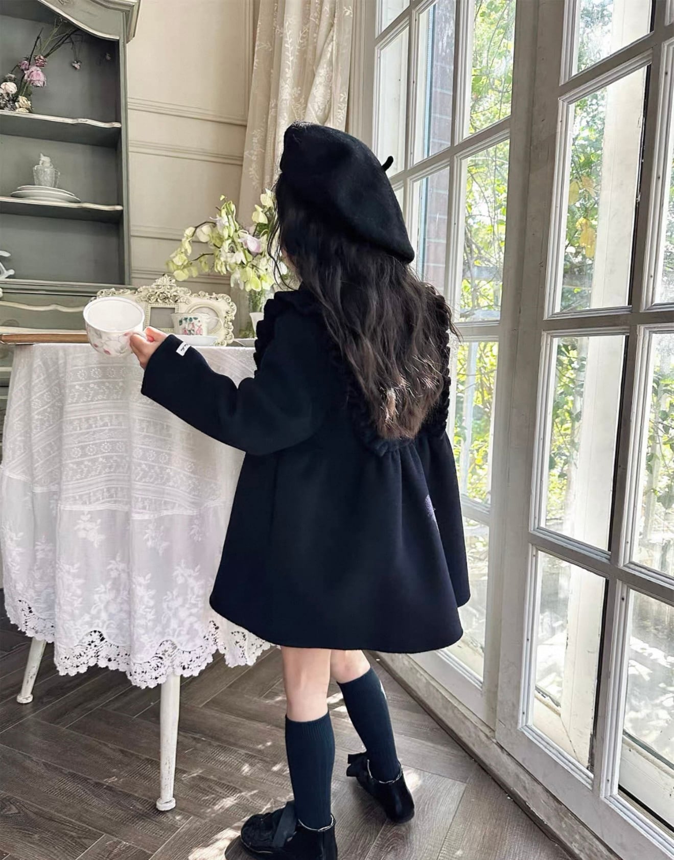 【Kids】ウール100%フリル濃紺スクールコート★ダウンインライナーベスト付き