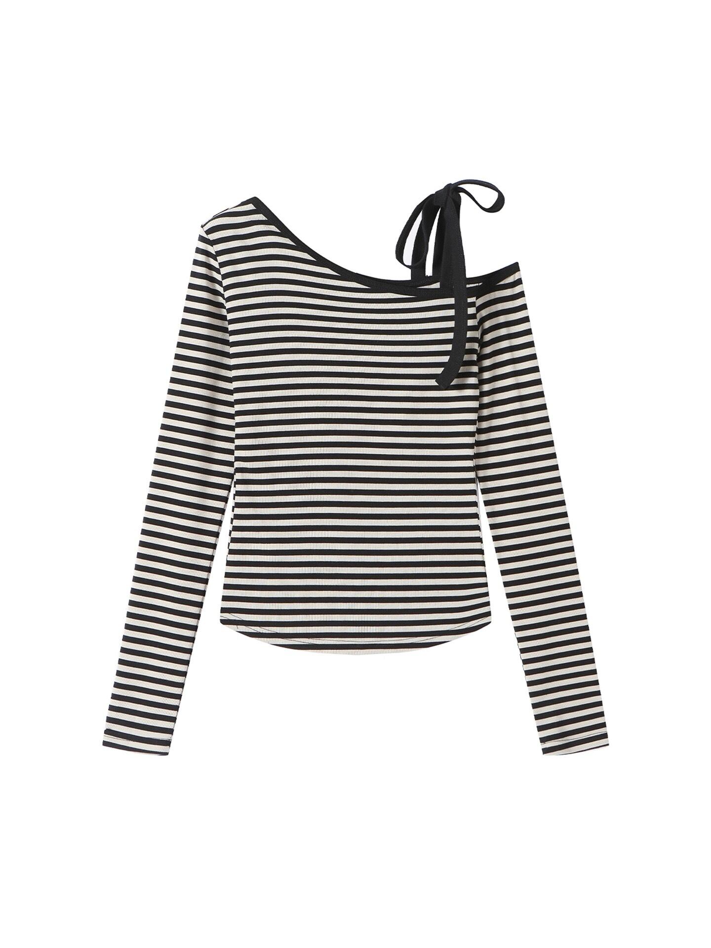 ボーダーワンショルリボンロングスリーブTシャツ☆