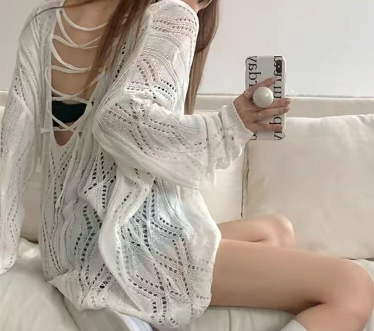 バックスタイルのレースアップが可愛い鍵網ニットです☆