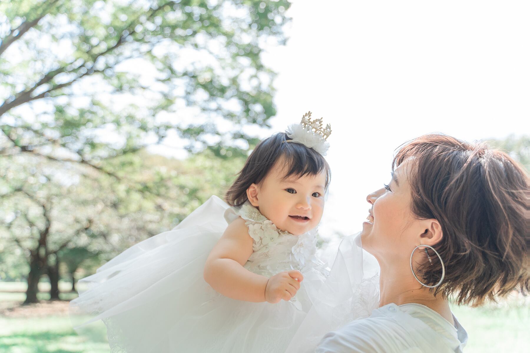立体フラワーがふんだんにあしらわれ、チュール、レースのボリュームあるスカートがとても可愛いベビードレスです☆