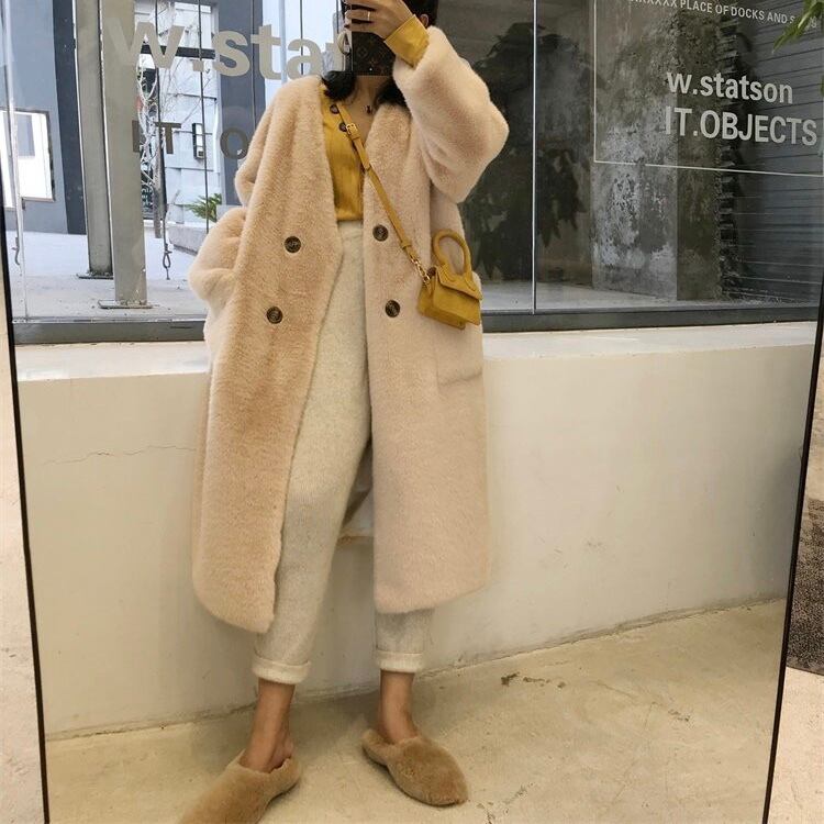 肌触りが気持ち良く暖かいエコファーノーカラーコートです★