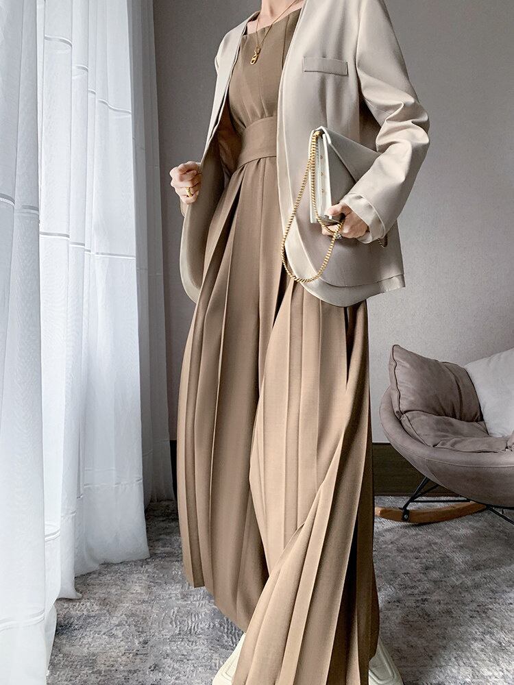 マキシ丈のプリーツオールインワンです☆
