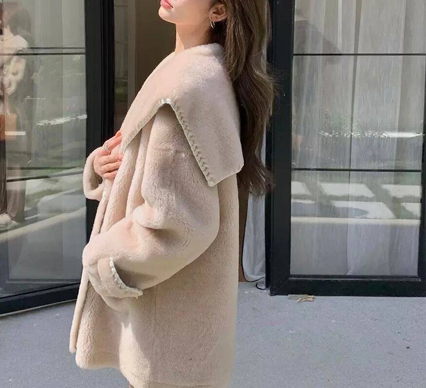 サイドステッチとビックカラーがとても可愛いエコファーコートです★